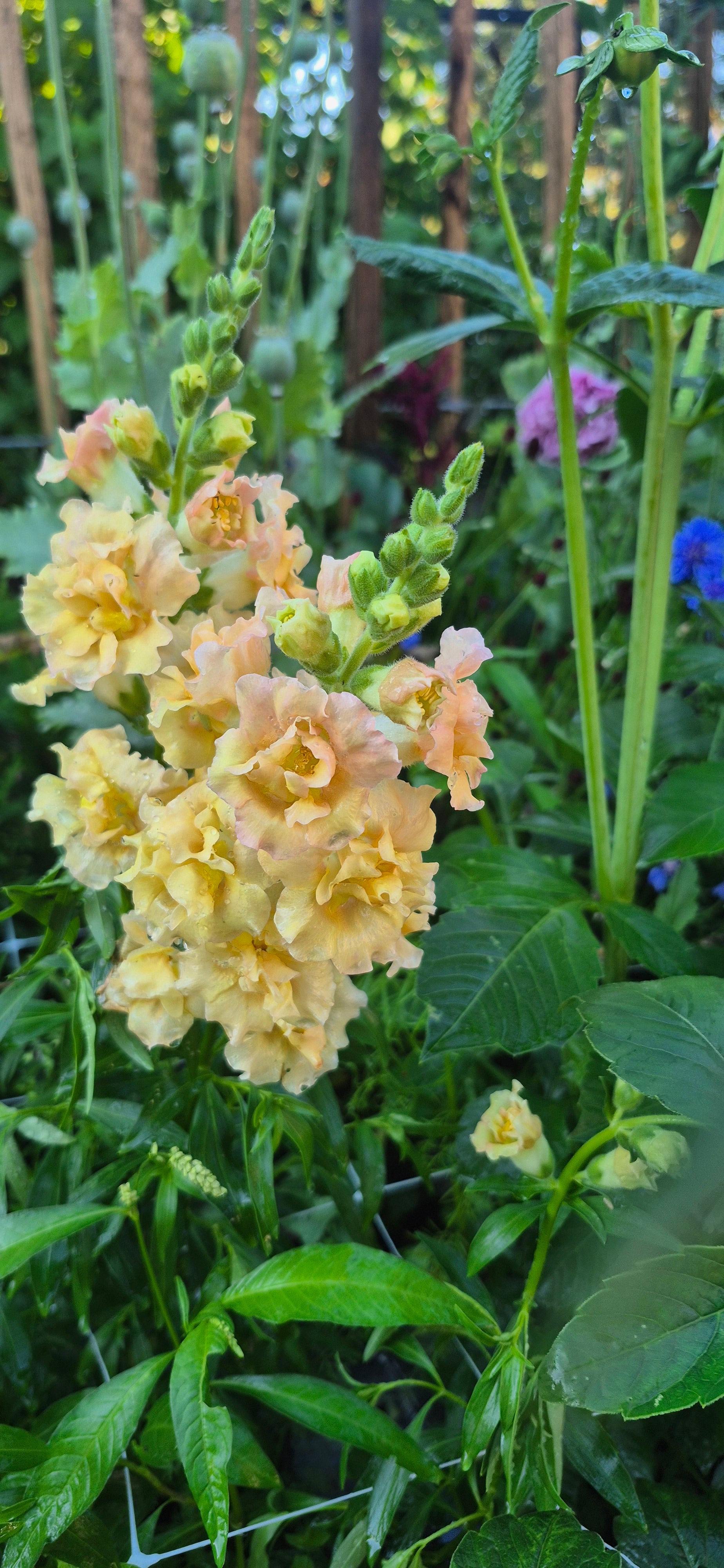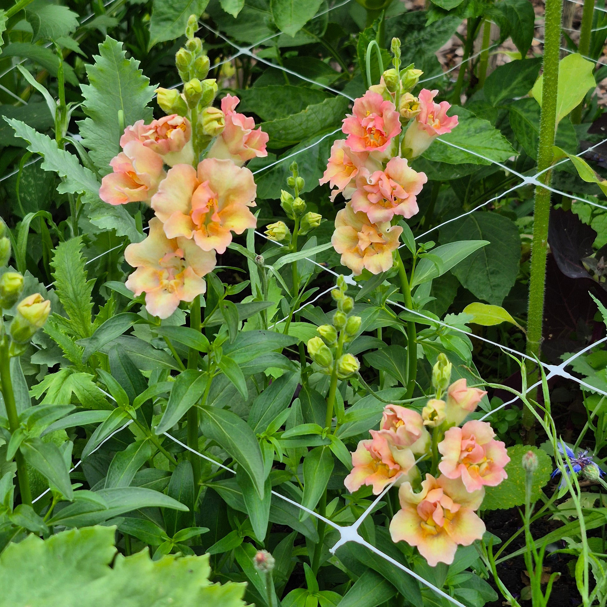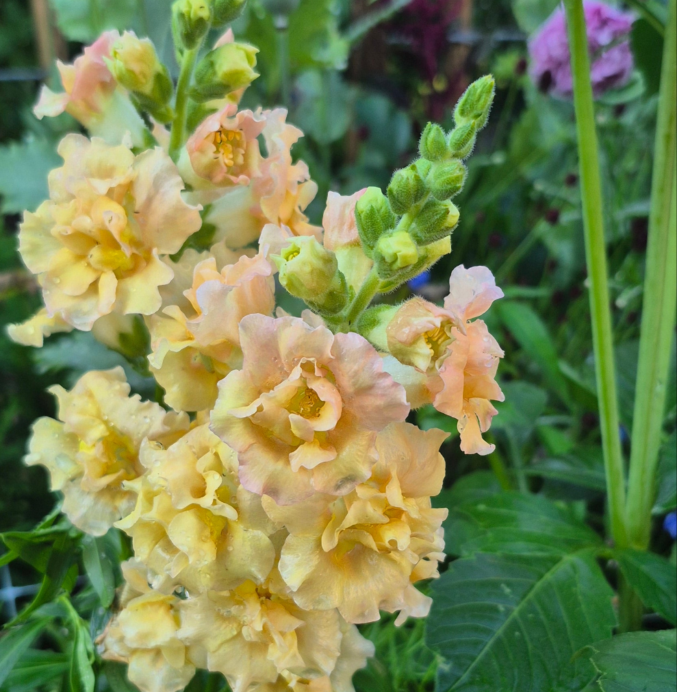 Jag har inte lång erfarenhet av att odla lejongap. De, liksom aster, tar så lång tid på sig och jag har dåligt tålamod. Men efter att jag fått ett brinnande intresse för att göra buketter ökar intresset för lejongap och jag söker ivrigt efter lättodlade sorter som ger riklig och tidig skörd och gärna ett pålitligt andra flor. Potomac Lavender är den ultimata sorten! Snapstar Champagne upplever jag som ännu tidigare och lättodlad men har ett sämre andra flor än Potomac Lavender.