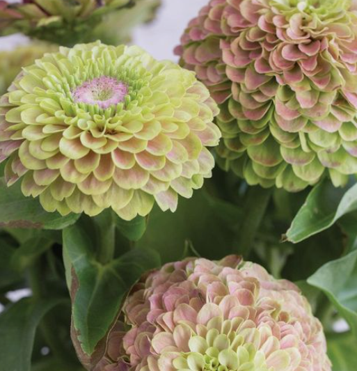 Zinnia Queen Lime Blotch är en unik zinnia i mjuka pasteller! De blommar med fyllda, halvfyllda och enkla blommor som startar med en skarpare lime i botten (som ljusnar med tiden) och mjukt övergår till ljust pastellgul och avslutar med rosa. Färgerna utvecklas, ljusnar och djupnar vartefter blomman mognar.